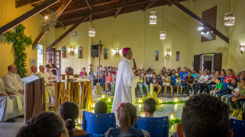 O dia festivo continuou a tarde com a Santa Missa, celebrada pelo Bispo Dom Aldemiro Sena dos Santos, concelebrada pelos Padres do Conselho PSDP - Pobres Servos da Divina Providência: Pe. Gilberto Bertolini, Pe. Adelmo Cagliaril, Pe. Gustavo Bonassi, concelebrou também o Pe. Geraldo Brandstetter e o Pe. Luis Pescarmona. Participou também o Juiz do Trabalho, Dr. Antônio Cavalcante e membros da Diretoria da AMECC.